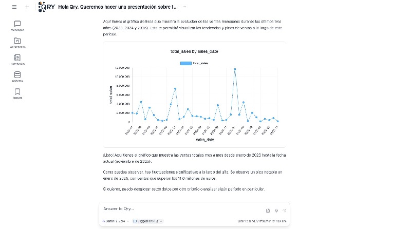 En palabras de Sergio Rodríguez de Guzmán, CTO y creador de QRY: “Durante años, la explotación del dato estaba reservada a expertos técnicos. QRY rompe esa barrera, capacitando a cualquier persona en la organización para interactuar con su información empresarial de forma sencilla, rápida y segura, potenciando la innovación y eficiencia de los equipos, otorgando una ventaja competitiva única ya que les permite tomar decisiones en tiempo real”.