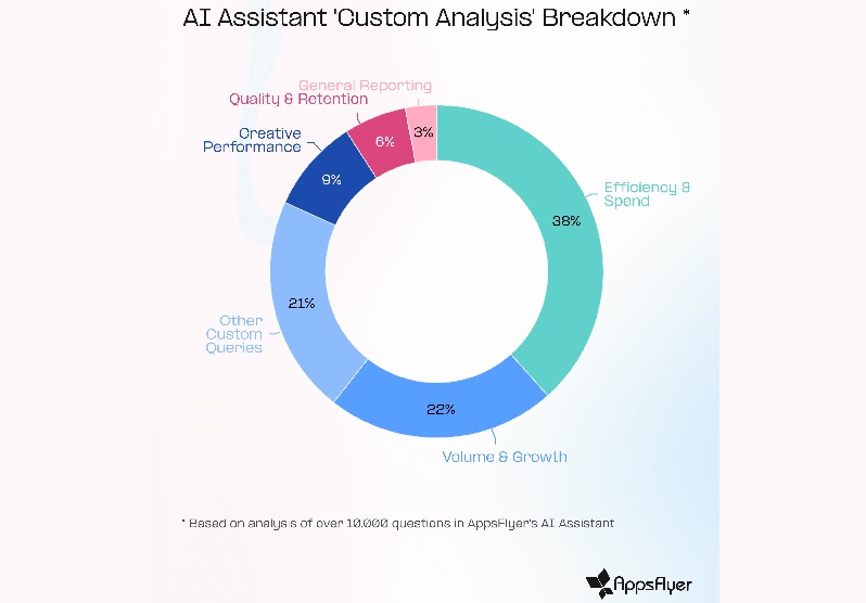 Por primera vez, AppsFlyer también analizó el uso de agentes de IA, identificando cómo los marketers integran la IA en sus flujos de performance marketing. Los datos muestran que el 57% de los despliegues de agentes se centraron en la automatización técnica, como configuración y comprobaciones de integridad de datos, mientras que el 32% apoyó la optimización del negocio.